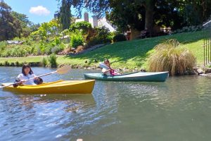 クライストチャーチ中心部にある広大なハグレイパーク、その中を流れるエイヴォン川でカヌー体験をしました。 二人乗りは前後にエンジンがあるためスピードが出る一方、一人乗りは方向転換からすべて自分でしなければならないため、難度は段違いです。 それでも当初こそ苦戦していたものの、折り返しポイントから戻っていくころには全員が軽快に乗りこなせるようになっていました。![]()