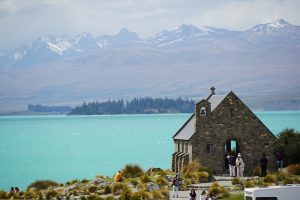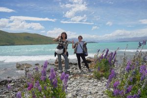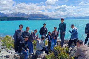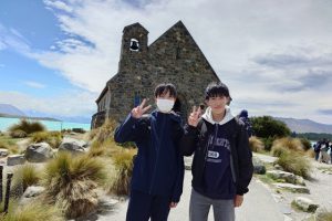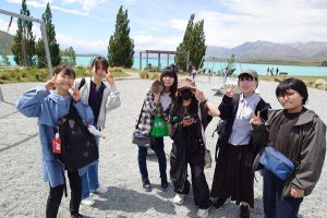 ニュージーランド南島のほぼ中央、国内最高峰を誇るマウントクックのふもとにあるプカキ湖とテカポ湖。氷河か削り取った岩石から溶け出した成分のため、ミルキーブルーと言われる独特の色合いが広がります。 ルピナスの花の紫色とのコントラストが織りなす美しい景色と、テカポ湖の湖畔にたたずむ「善き羊飼いの教会」は、絵葉書や画像でも見たことがある方も多いのではないでしょうか。 この日は日本人ガイドさんにも同行していただき、英語学習はいったん休憩。ニュージーランドの自然の魅力に目いっぱい浸ってもらうこととなりました。 また昼食にはおにぎりが振る舞われ、久しぶりの日本食にテンションが上がっていました。![]()