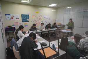 生徒たちは4つのグループに分かれ、午前または午後は英会話のレッスン、もう片方の時間で様々なプログラムを行います。