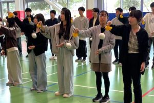 ハエアタコミュニティキャンパスは、マオリの子供たちと共に学ぶ学校です。生徒のおよそ半分がマオリであり、マオリ文化やマオリ語の保全にも取り組んでいます。 ここでは2人1組で棒を投げ合う「ティラカウ」や、紐付きのボールを回す「ポイダンス」、さらに伝統的な踊りである「ハカ」を体験しました。 全員で練習の成果を発表した後は、お礼に童謡「ふるさと」と4部合唱「大地讃頌」を披露したところ、大いに喜んでくれました。![]()